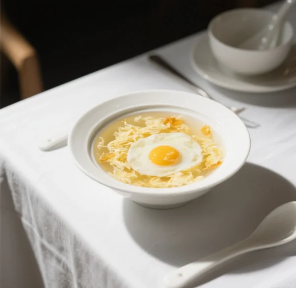 🥣 Silky ribbons of fresh egg gently stirred into a light, seasoned chicken broth with a hint of white pepper and scallions.
