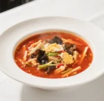 🌶️ A rich, tangy broth loaded with tofu, mushrooms, bamboo shoots, and egg ribbons, spiced with white pepper and balanced with vinegar for the perfect kick.